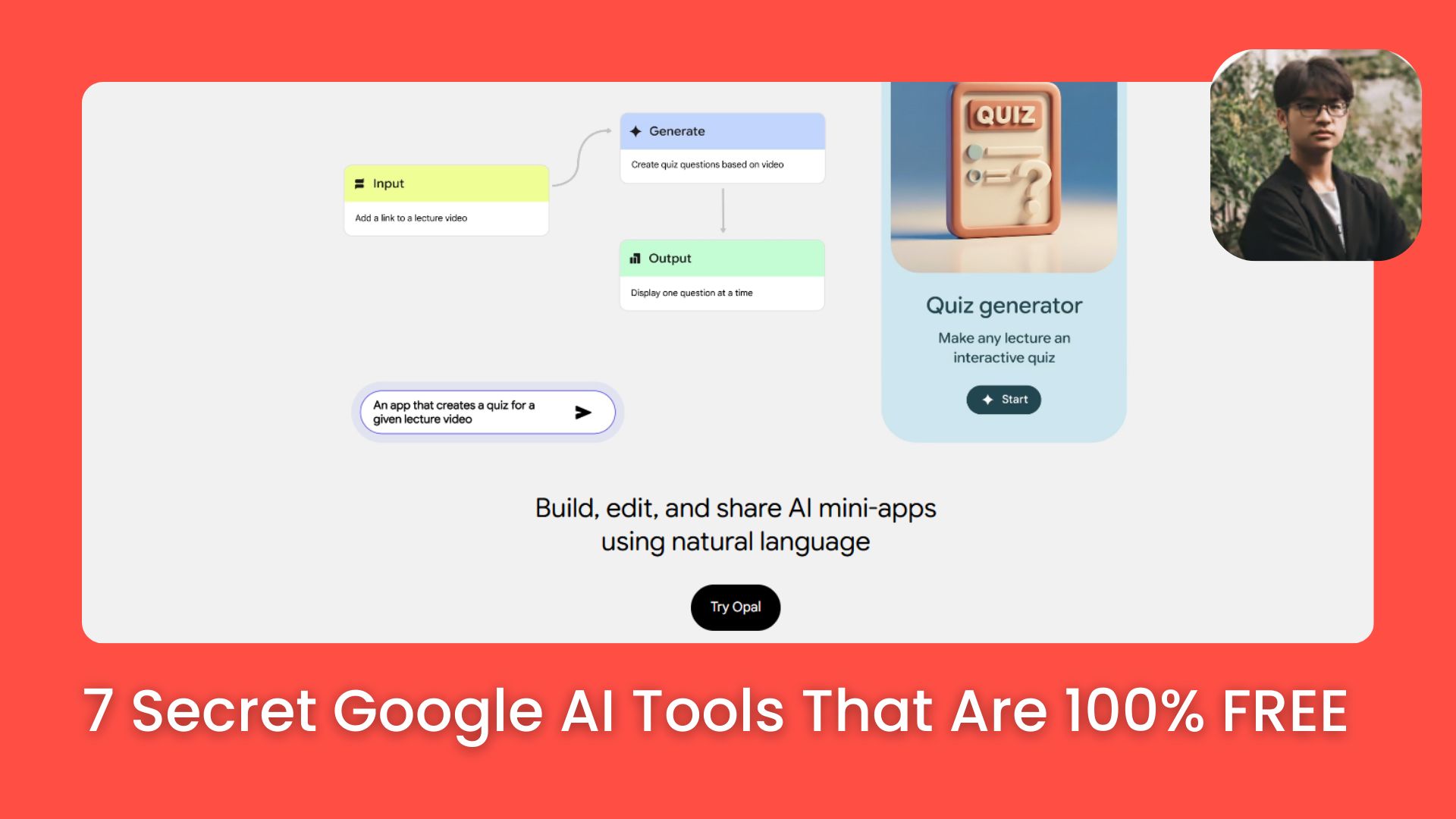 What Is Opal? You can access it at opal.google. That is all you need. Opal lets you build functional apps using nothing but plain English descriptions. You describe what you want to make. Then, it builds the whole app for you automatically. It is a completely free Google AI tool.